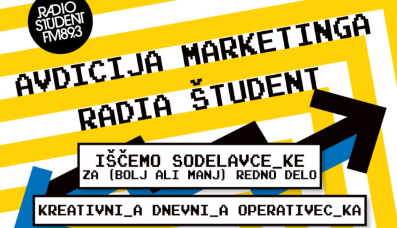 Če si se prepoznal_a v tem, pošlji mail na marketing@radiostudent.si s svojim CV-jem, motivacijskim pismom in pripisom “MRŠ avdicija”.