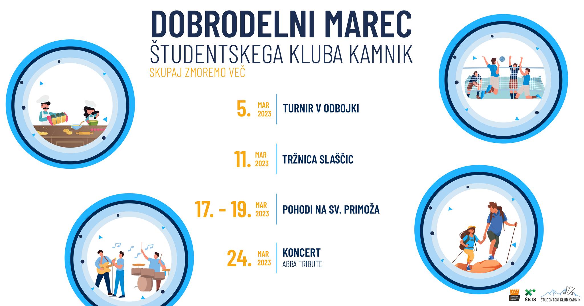 - Koncert AbbaMia, 24.3.2023: Dobrodelni mesec bodo zaključili z obilo glasbe in dobre volje! Na koncertu, ki bo v petek, 24.3.2023 v Domu kulture Kamnik, vas bo z glasbenim dogajanjem zabavala Tribute zasedba znane švedske glasbene skupine ABBA- ABBAMia! Vsa sredstva zbrana z nakupom vstopnica za koncert bodo darovana v dobrodelne namene