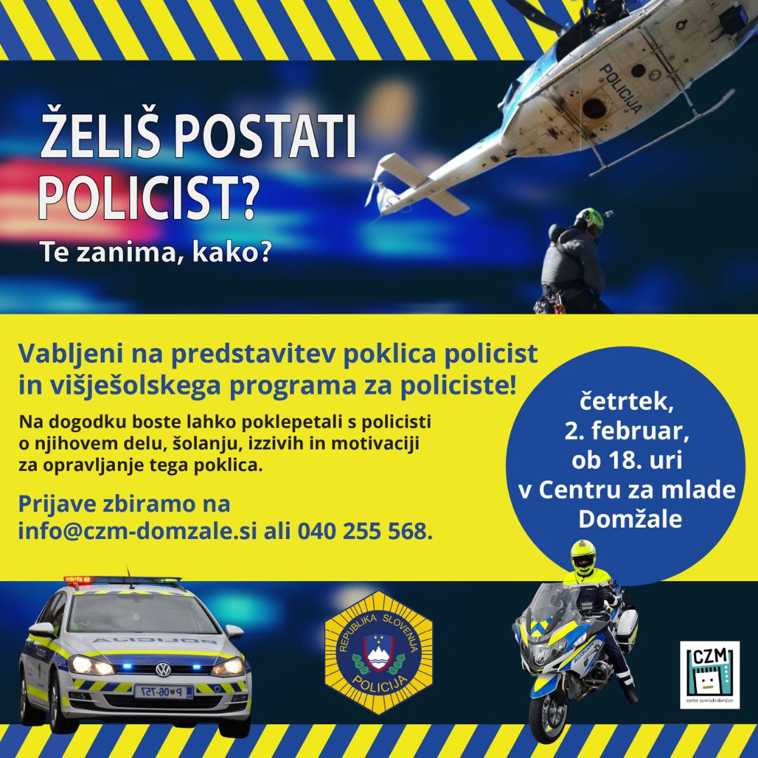 Želiš postati policist? Te zanima, kako? Pridi na predstavitev poklica policist in višješolskega programa za policiste!